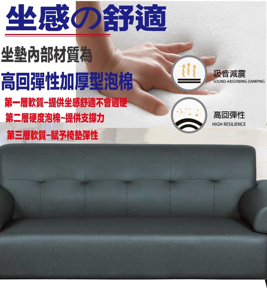 採用內部實木框架+耐磨造型腳座+耐磨耐刮皮革+高回彈泡棉等安心材質製造