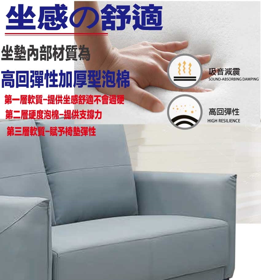 耐磨耐刮皮革+高回彈泡棉