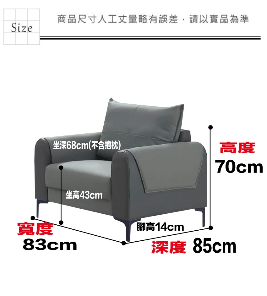 產品名稱:【綠家居】莫亞克雙色耐磨皮革單人座沙發椅 - 1人沙發椅尺寸:(寬)83x(深)85x(高)70/公分