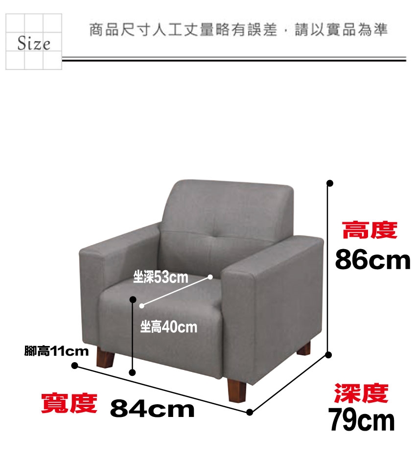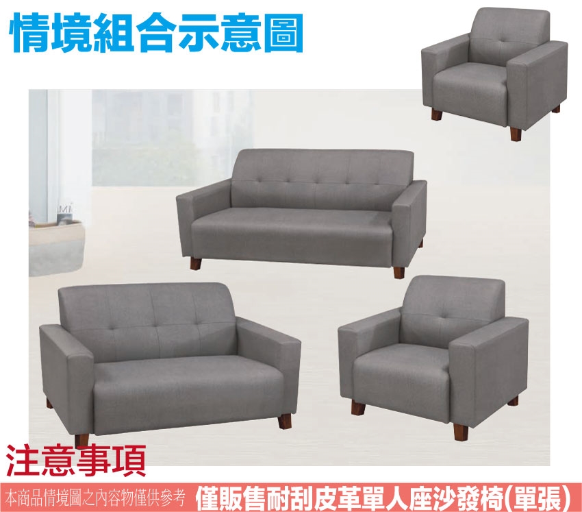 產品名稱:【綠家居】賽拉灰耐磨皮革單人座沙發椅 - 1人沙發椅尺寸:(寬)84x(深)79x(高)86/公分