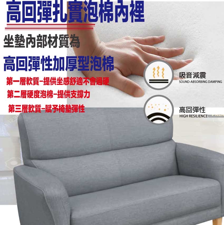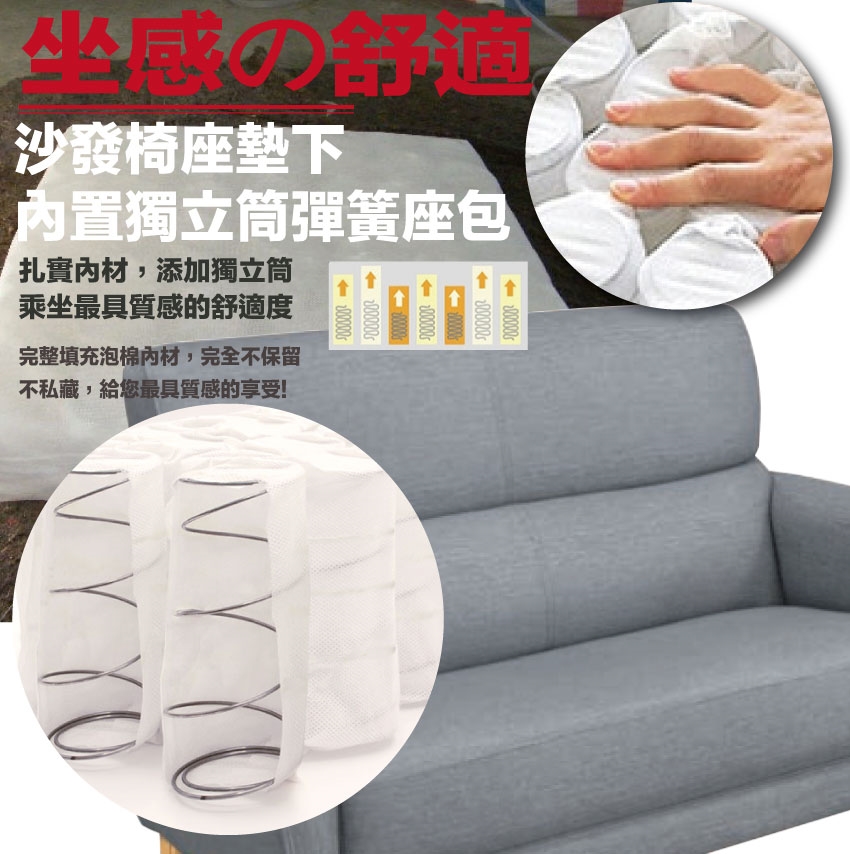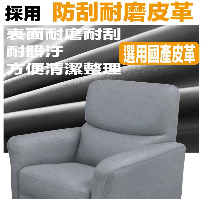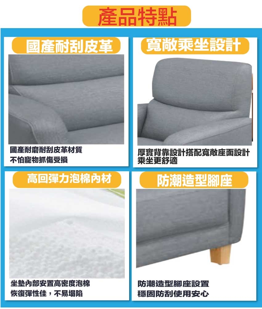 採用內部實木框架+耐磨造型腳座+耐磨耐刮皮革+高回彈泡棉+獨立筒彈簧座包等安心材質製造