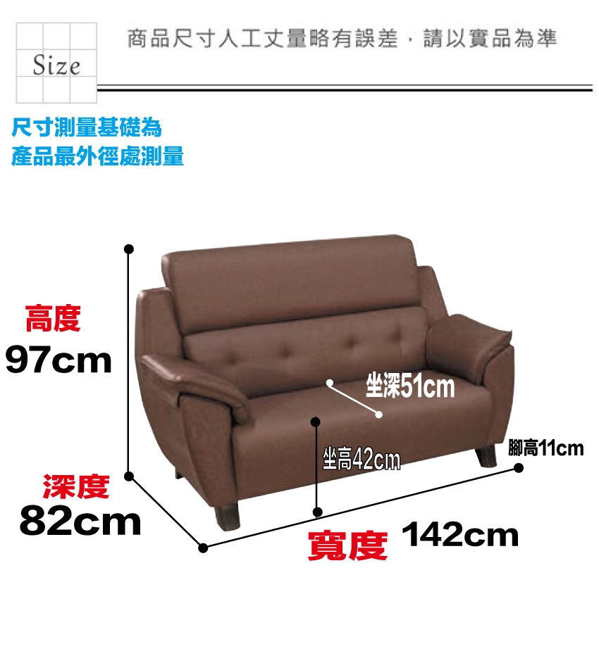 2人沙發椅尺寸:(寬)142x(深)82x(高)97/公分