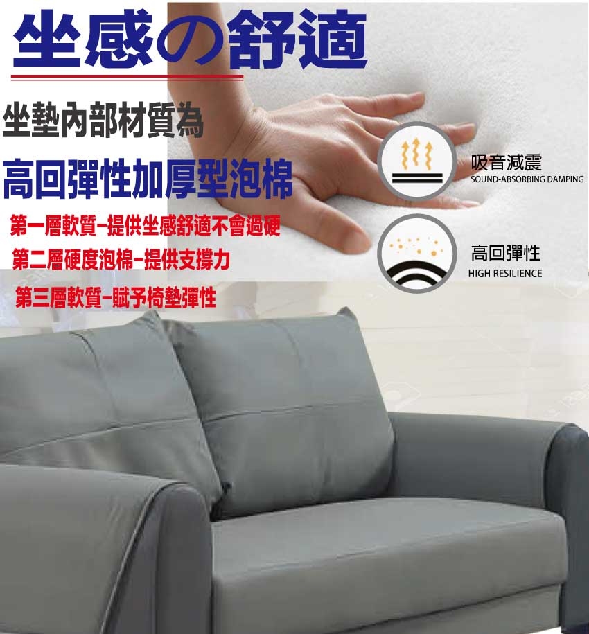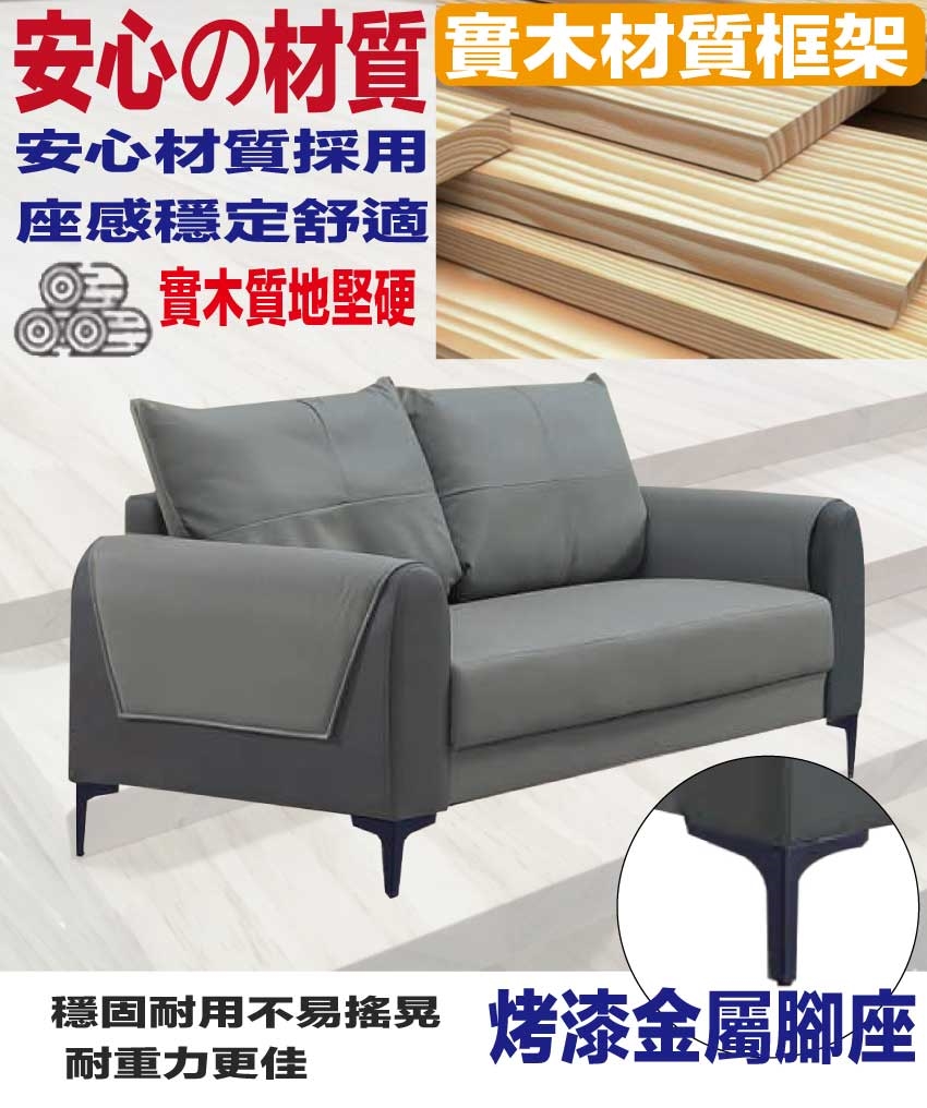 採用內部實木框架+烤漆金屬腳座+耐磨耐刮皮革+高回彈泡棉等安心材質製造