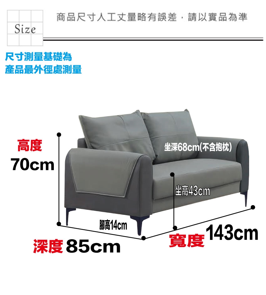 產品名稱:【綠家居】莫亞克雙色耐磨皮革二人座沙發椅 - 2人沙發椅尺寸:(寬)143x(深)85x(高)70/公分