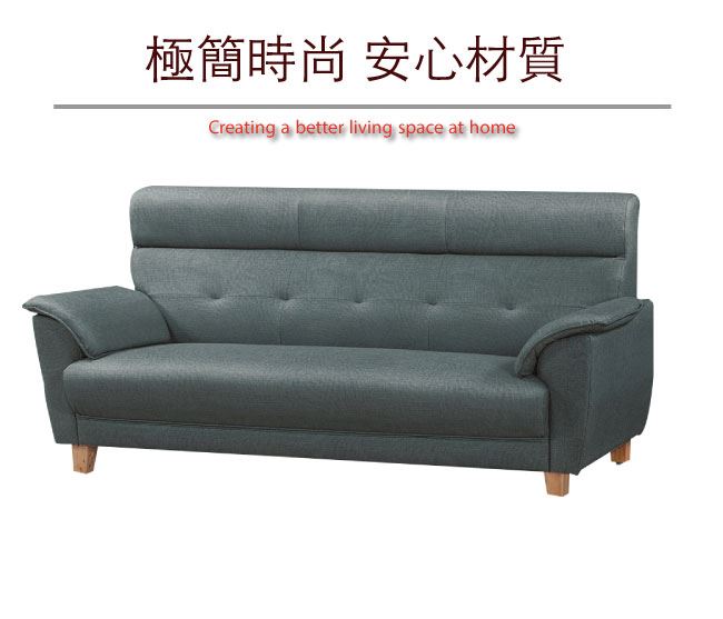 【綠家居】華道頓 時尚灰亞麻布紋皮革三人座沙發椅