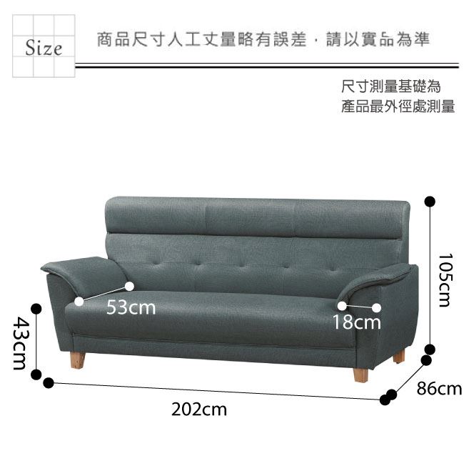 材質 | ◆產品名稱: 【綠家居】華道頓 時尚灰亞麻布紋皮革三人座沙發椅 產品尺寸: 3人沙發椅尺寸:(寬)202x(深)86x(高)105/公分 材質:桐木實木骨架椅身+防潮防刮腳座 皮革:耐磨布紋皮革 坐墊:三層式高密度泡棉+絲棉