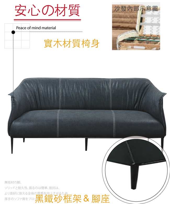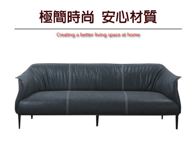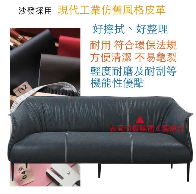【綠家居】提菲芮 工業風深灰仿舊皮革三人座沙發椅