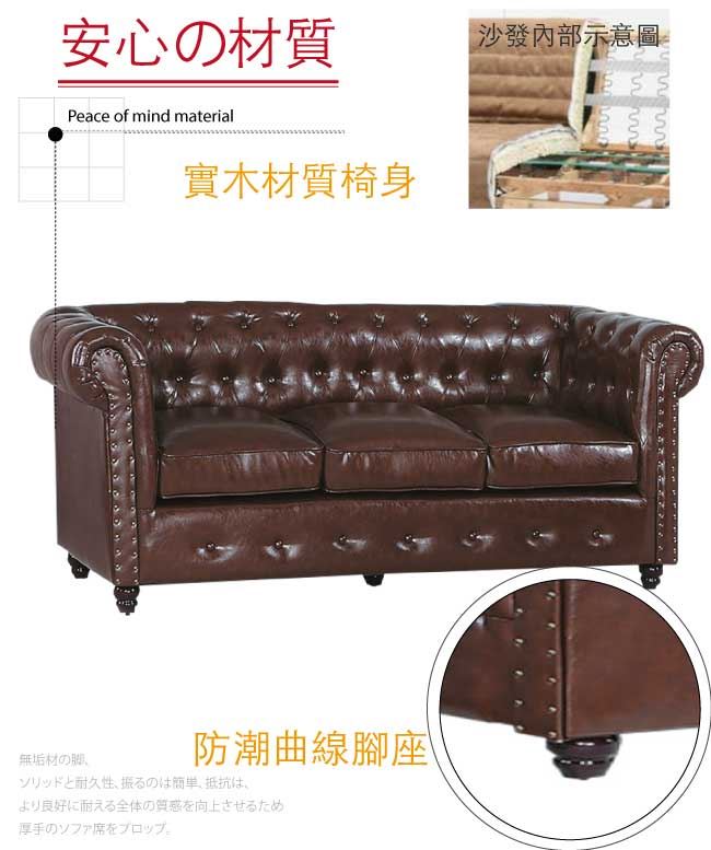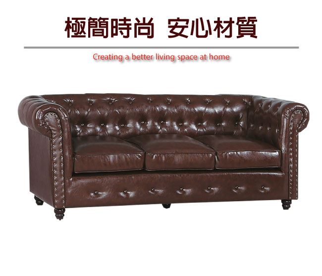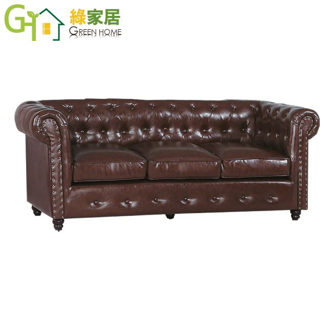 【綠家居】提格 美式咖啡油蠟柔韌皮革三人座沙發椅