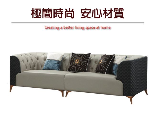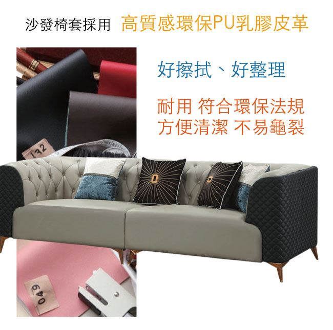 【綠家居】諾伊克 時尚雙色柔韌皮革四人座沙發椅