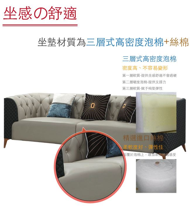 - 三層式高密度泡棉+絲綿材質