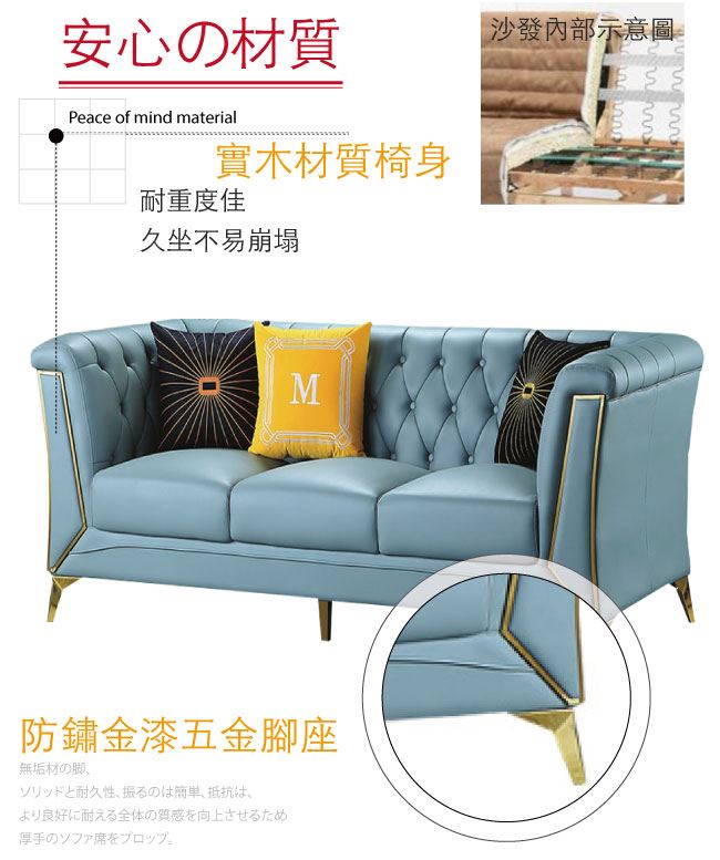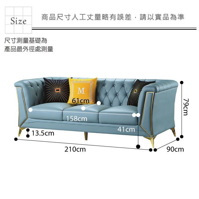 材質 | ◆產品名稱: 【綠家居】伊瑟克 時尚灰柔韌皮革三人座沙發椅 產品尺寸: 尺寸:(寬)210x(深)90x(高)79/公分 材質:桐木實木骨架椅身+防鏽金漆五金腳座 布料:柔韌透氣皮革 坐墊:三層式高密度泡棉+絲棉
