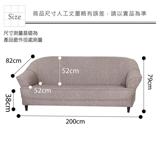 材質 | ◆產品名稱: 【綠家居】克悅萊 時尚透氣皮革三人座沙發椅(二色可選) 產品尺寸: 3人座沙發尺寸:(寬)200x(深)82x(高)79/公分 材質:桐木實木骨架椅身+黑色防潮腳座 皮革:透氣柔韌皮革 坐墊:三層式高密度泡棉+絲棉