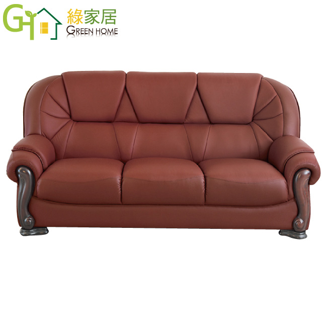 【綠家居】雅多 時尚半牛皮革獨立筒三人座沙發(3人座)