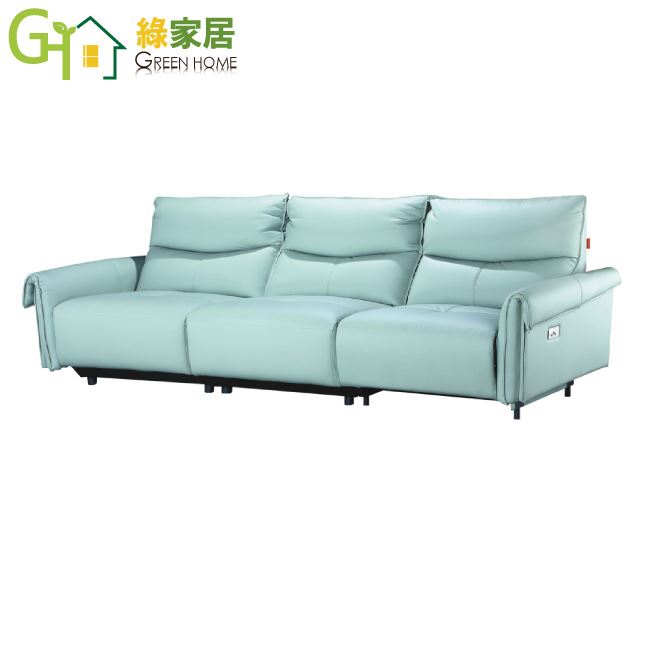 【綠家居】奧卡多功能半牛皮革機能大三人座沙發椅(單座位可調傾仰機能設計+按鈕開關調整)