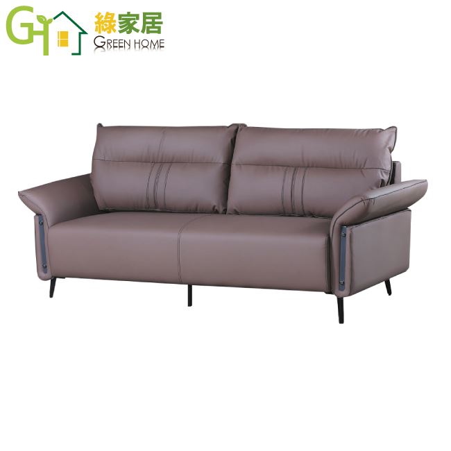 【綠家居】波卡咖啡柔韌皮革三人座沙發椅
