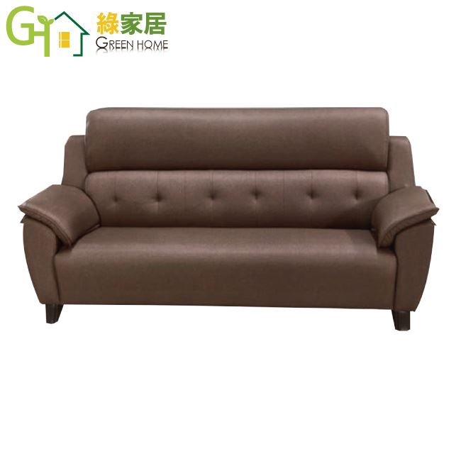 【綠家居】強森咖啡色耐磨皮革三人座沙發椅