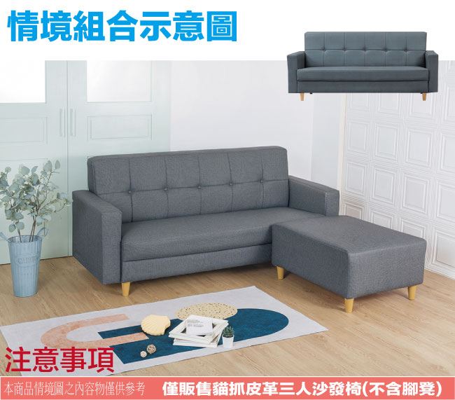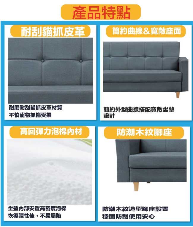 【綠家居】利爾灰色貓抓皮革三人座沙發椅