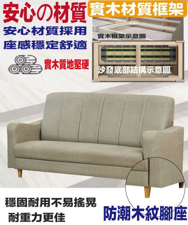 商 品 介 紹 | 【綠家居】馬爾亞麻色貓抓皮革三人座沙發椅 時尚亞麻色系+現代美型外觀+安心材質製造,就是這種頂級質感的設計,能輕鬆地融入各種空間風格,採用實木椅身框架+防潮木紋腳座+高回彈力加厚泡棉+耐刮貓抓皮革等安心材質製造,品質安心有保障,現在購買專人送到府服務,免組裝+免運費,讓你省時省力省運費! 【商品特色】 時尚亞麻色系+現代美型外觀+安心材質製造 採用實木椅身框架+防潮木紋腳座+高回彈力加厚泡棉+耐刮貓抓皮革等安心材質製造 專人送貨到府免組裝免運費服務,讓您省時又便利