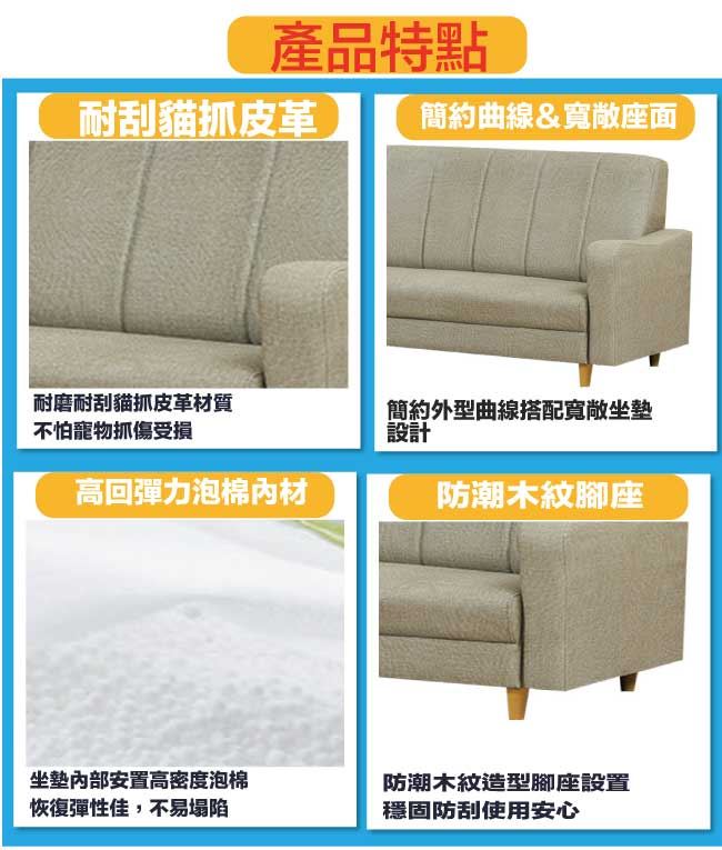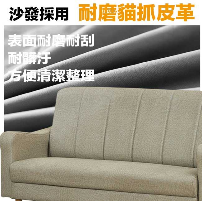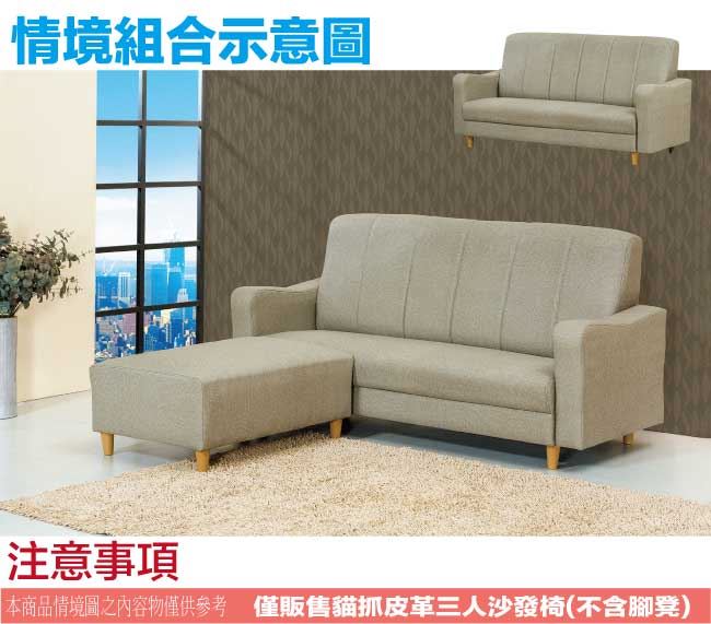 【綠家居】馬爾亞麻色貓抓皮革三人座沙發椅