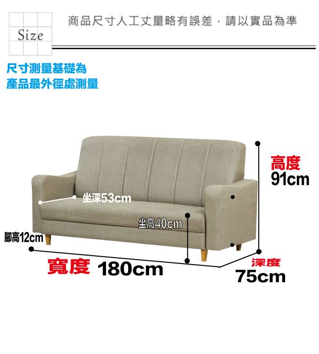 材質 | ◆產品名稱:【綠家居】馬爾亞麻色貓抓皮革三人座沙發椅 產品尺寸: 三人尺寸:(寬)180x(深)75x(高)91/公分 材質:實木椅身框架+防潮木紋腳座 皮革:耐刮貓抓皮革 坐墊:高回彈力加厚泡棉 |
