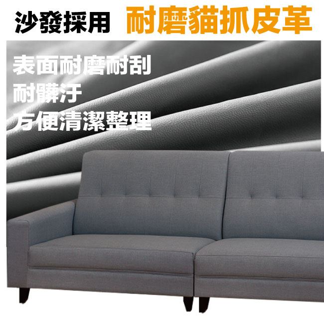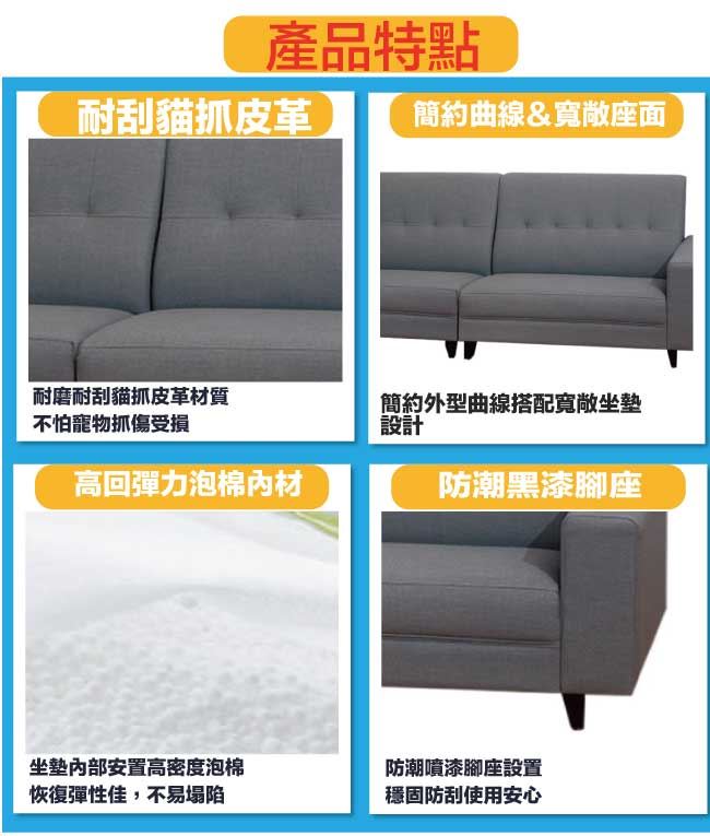 【綠家居】格瑪灰色貓抓皮革四人座沙發椅