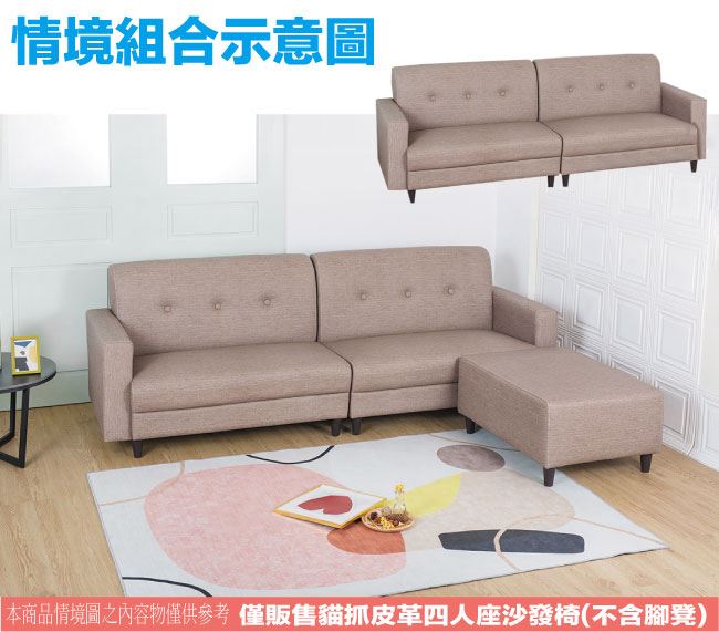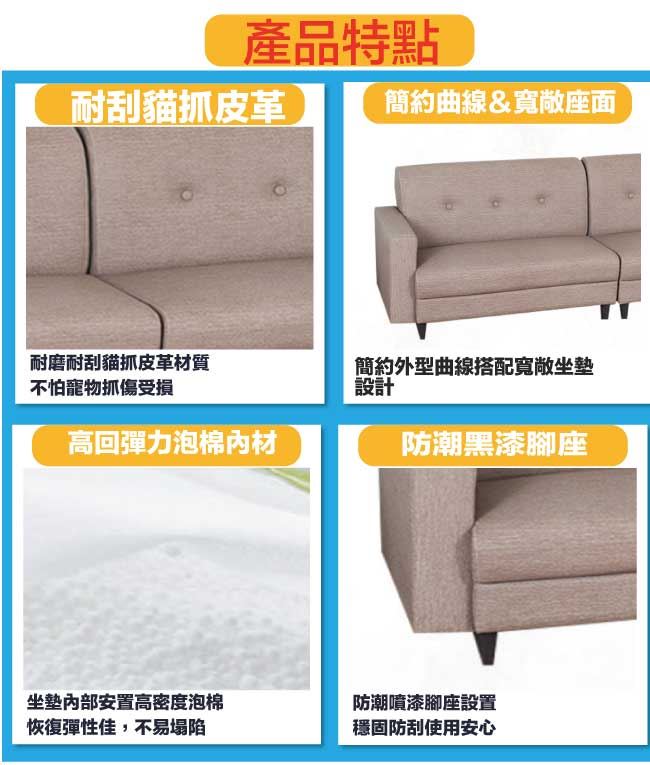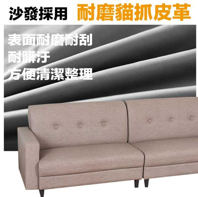 【綠家居】克提拉亞麻色貓抓皮革四人座沙發椅