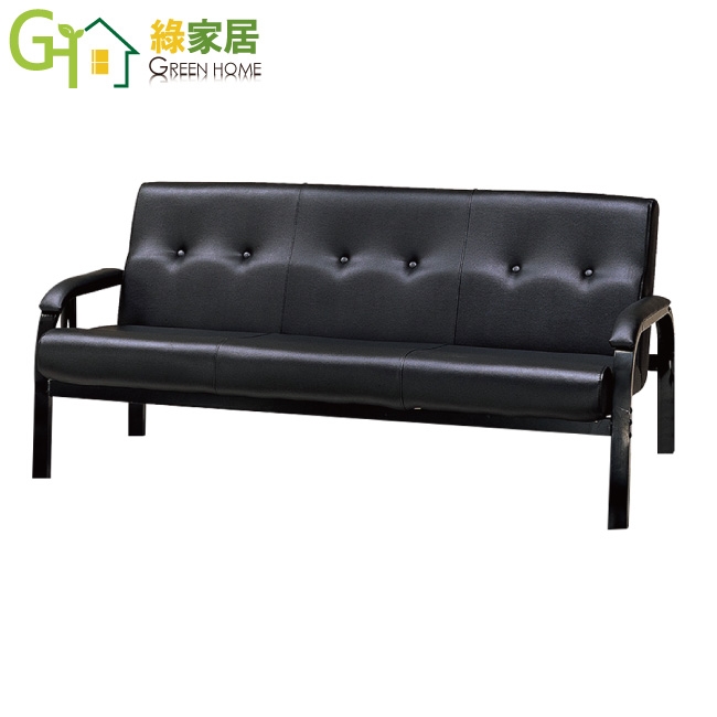 【綠家居】米薇黑透氣皮革三人座沙發椅