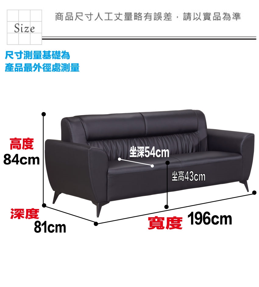 沙發尺寸:(寬)196x(深)81x(高)84/公分