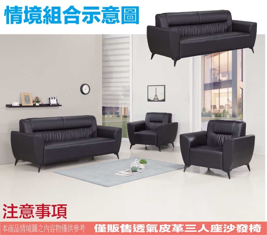 - ◆產品名稱:【綠家居】羅德透氣皮革三人座沙發椅/辦公椅