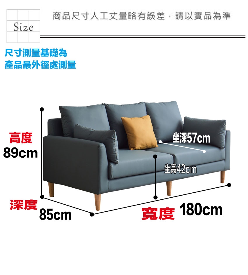 沙發尺寸:(寬)180x(深)85x(高)89/公分
