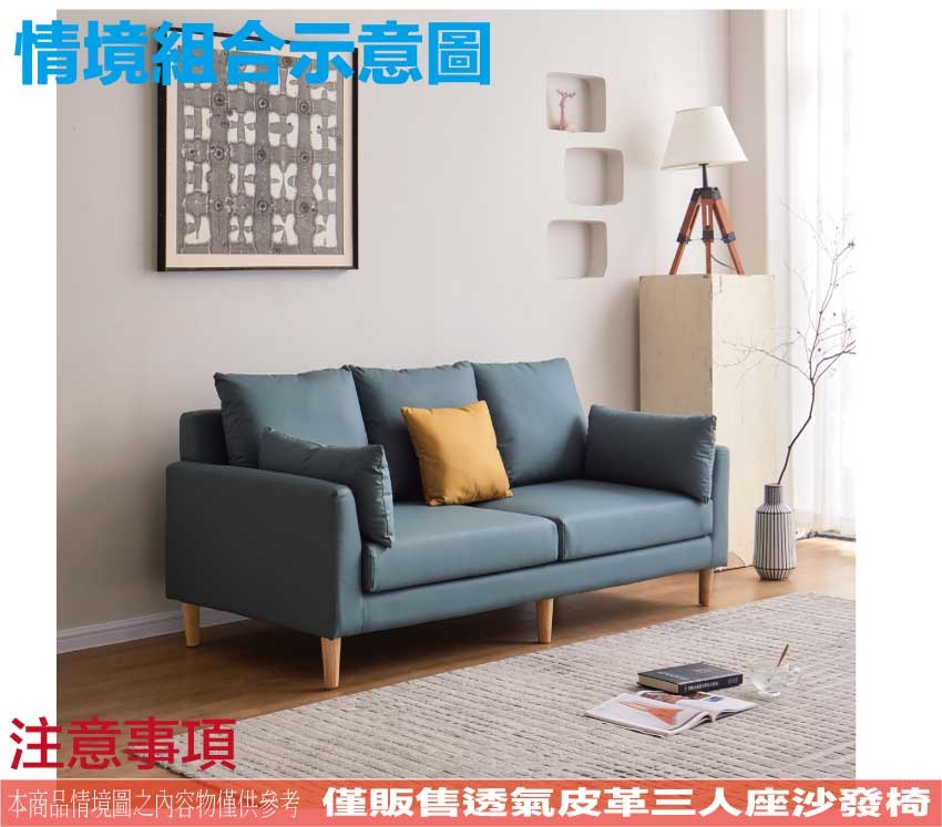 - ◆產品名稱:【綠家居】蒙塔灰透氣皮革三人座沙發椅
