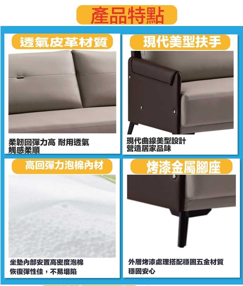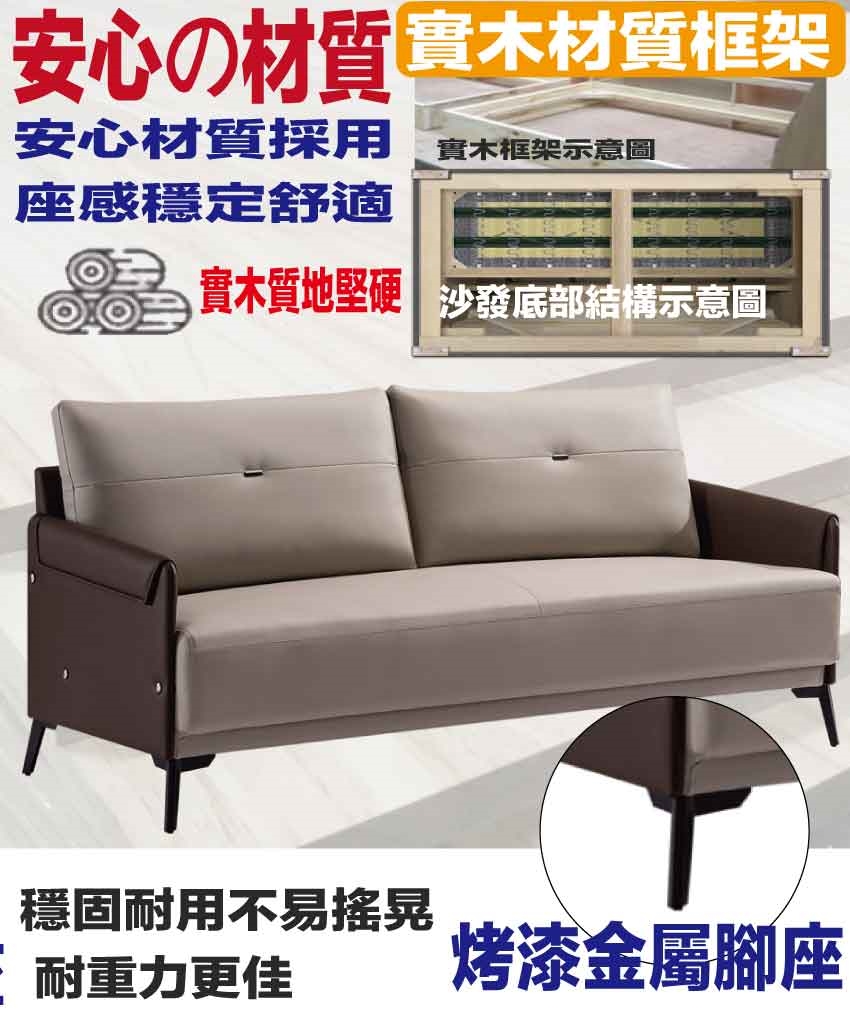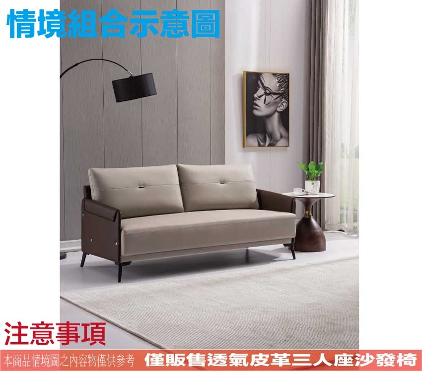 - ◆產品名稱:【綠家居】蒙卡雙色透氣皮革三人座沙發椅