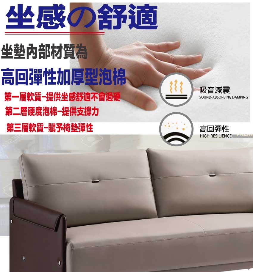 採用內部實木底框+烤漆金屬腳座+透氣柔韌皮革+高回彈泡棉等安心材質製造