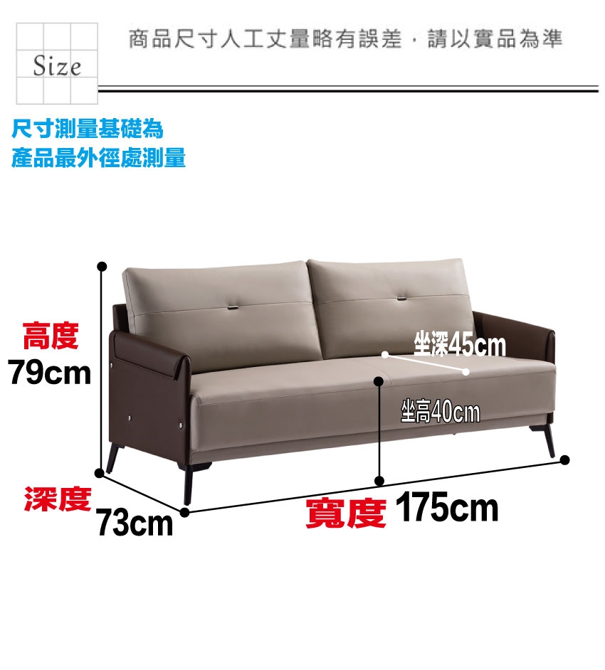 沙發尺寸:(寬)175x(深)73x(高)79/公分