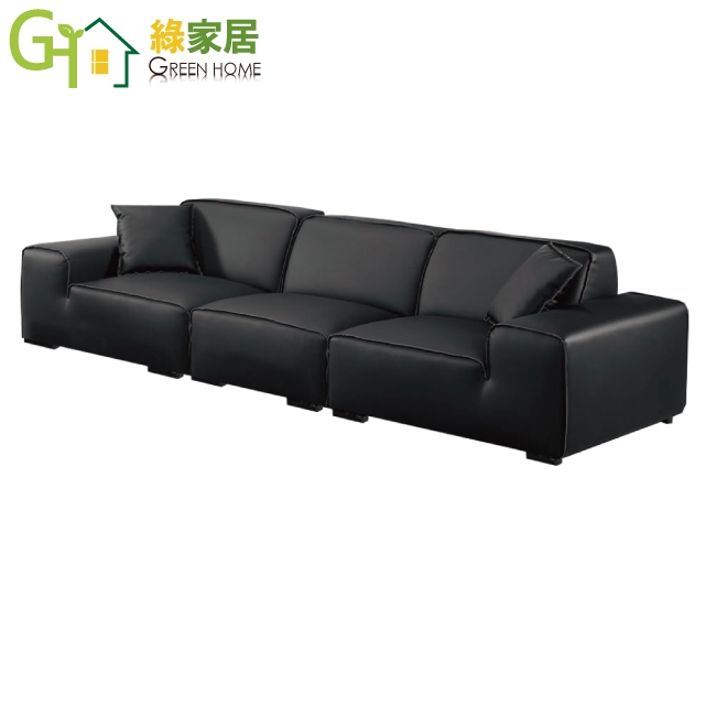 【綠家居】愛爾黑色透氣皮革四人座沙發椅