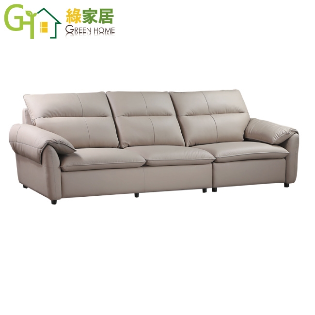 【綠家居】德多灰色半牛皮革四人座沙發椅