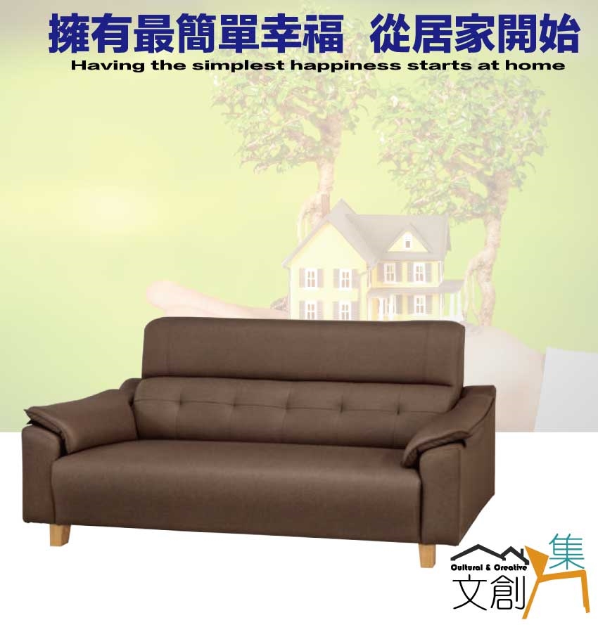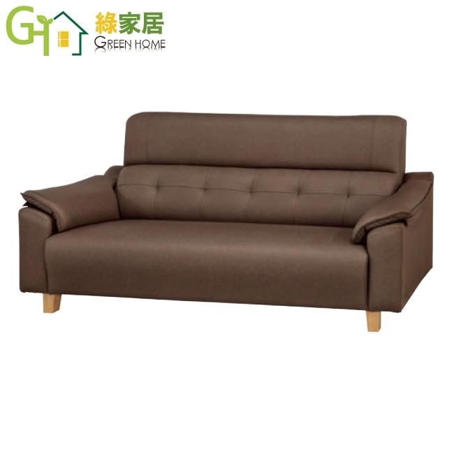 【綠家居】倫可咖啡色耐磨皮革三人座沙發椅