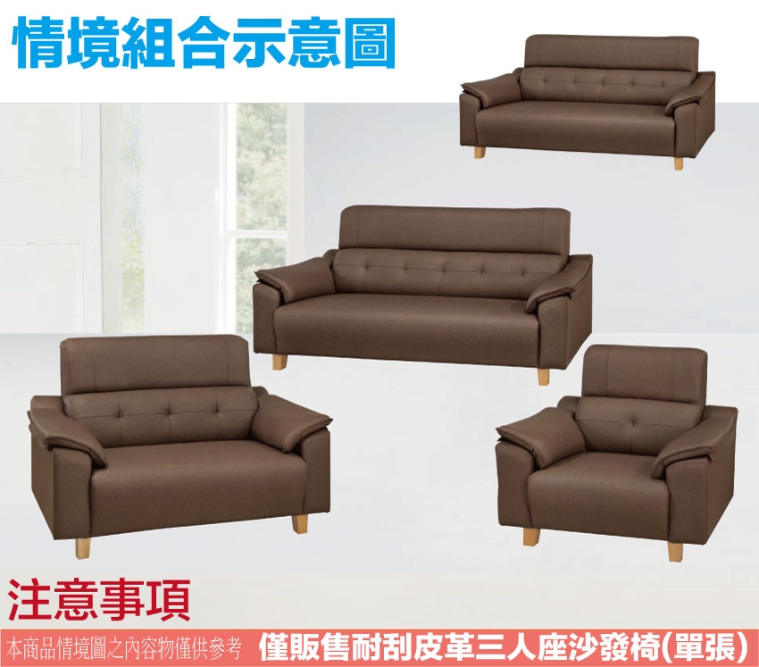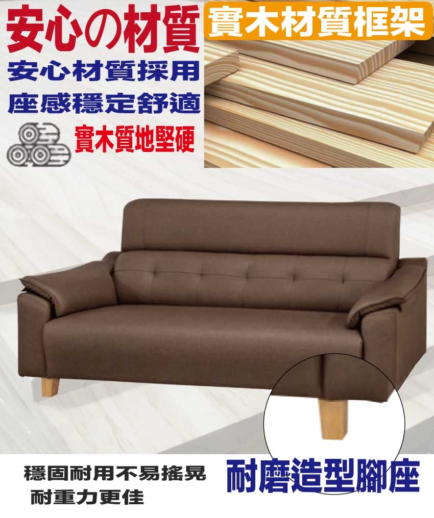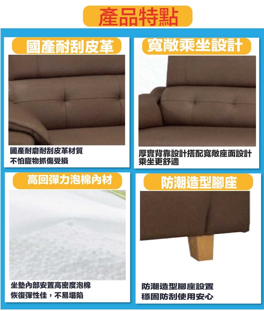 採用內部實木框架+耐磨造型腳座+耐磨耐刮皮革+高回彈泡棉等安心材質製造