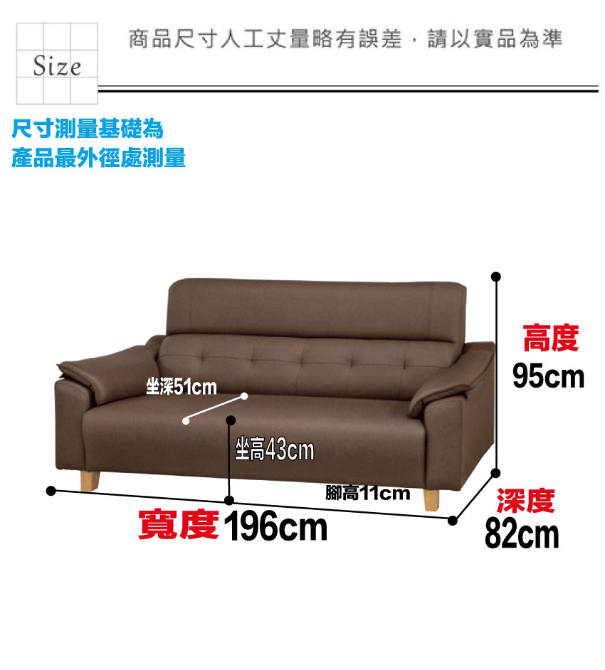 產品名稱:【綠家居】倫可咖啡色耐磨皮革三人座沙發椅 - 3人沙發椅尺寸:(寬)196x(深)82x(高)95/公分