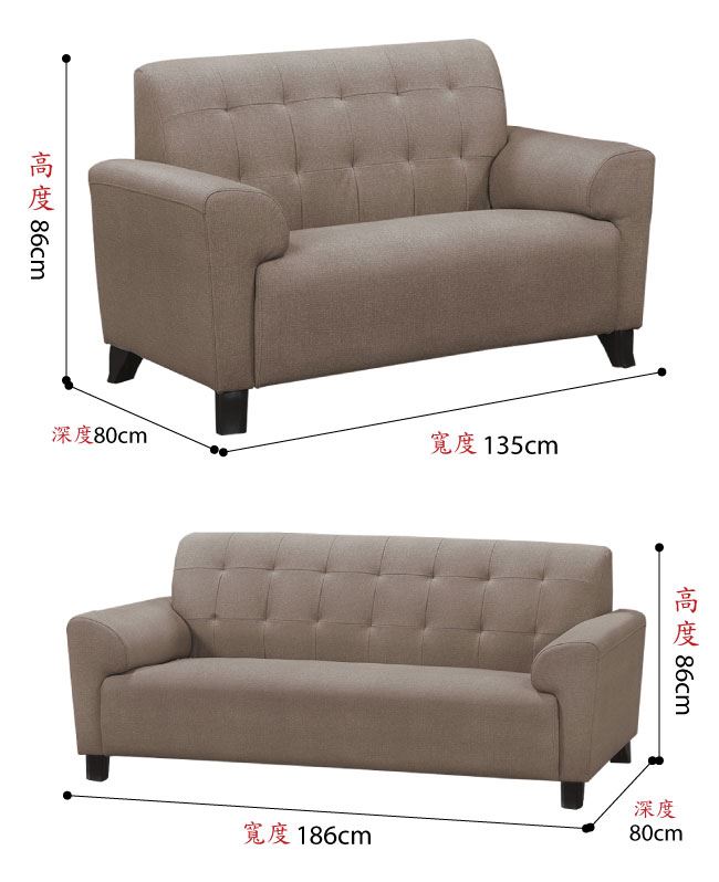 材質 | ◆產品名稱: 【綠家居】海雅灰耐磨貓抓皮革沙發椅組合(1+2+3人座組合) 產品尺寸: 單人座尺寸:(寬92x(深)80x(高)86/公分 二人座尺寸:(寬)135x(深)80x(高)86/公分 三人座沙發尺寸:(寬)186x(深)80x(高)86/公分 材質:實木骨架椅身+防潮造型腳座 皮革:耐磨貓抓皮革 坐墊:三層式高密度泡棉