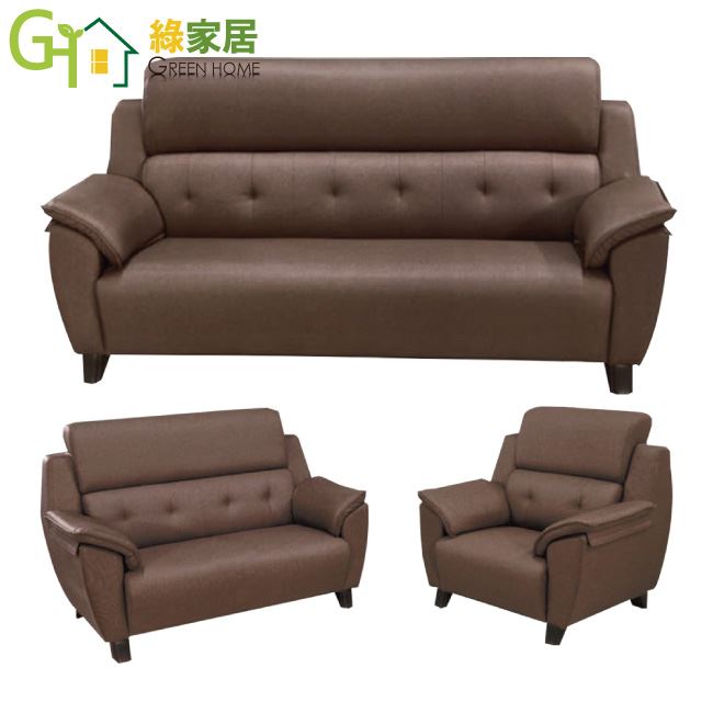 【綠家居】強森咖啡色耐磨皮革沙發椅組合(1+2+3人座組合)