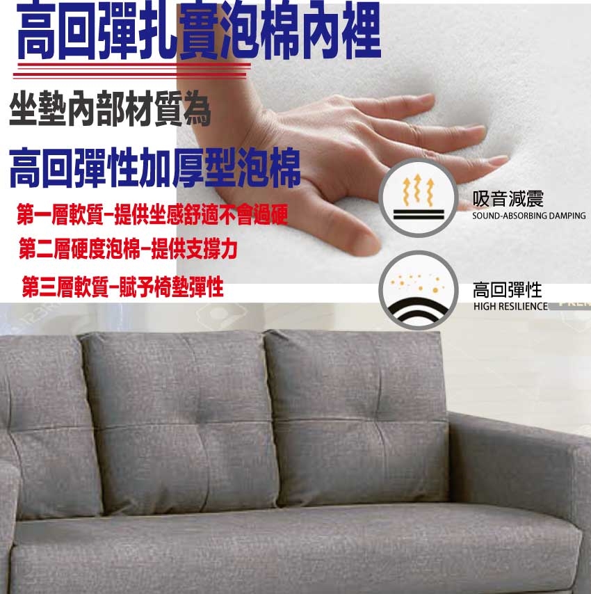 坐墊:高回彈泡棉+獨立筒彈簧座包