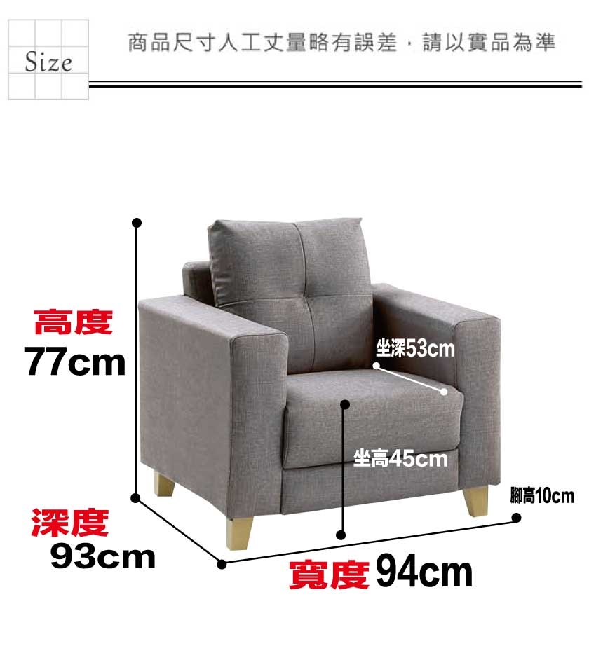產品名稱:【綠家居】希默灰耐磨皮革獨立筒沙發椅組合(1+2+3人座組合) - 1人沙發椅尺寸:(寬)94x(深)77x(高)93/公分