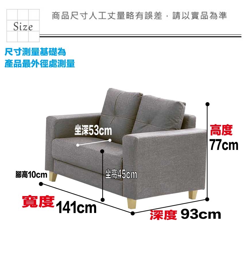2人沙發椅尺寸:(寬)141x(深)77x(高)93/公分