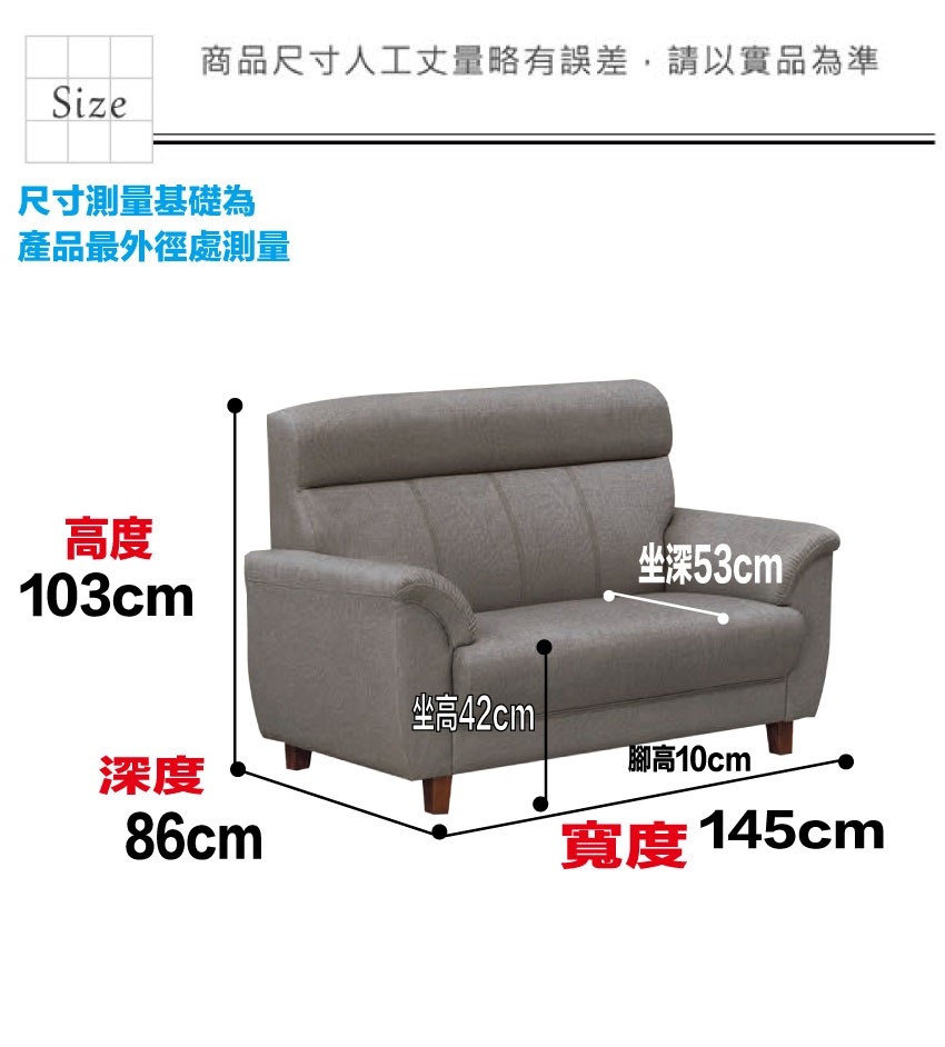 2人沙發椅尺寸:(寬)145x(深)86x(高)103/公分