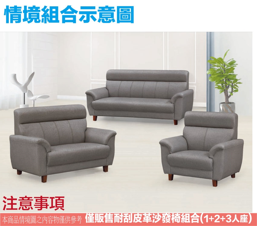 產品名稱:【綠家居】默可灰耐磨皮革沙發椅組合(1+2+3人座組合)