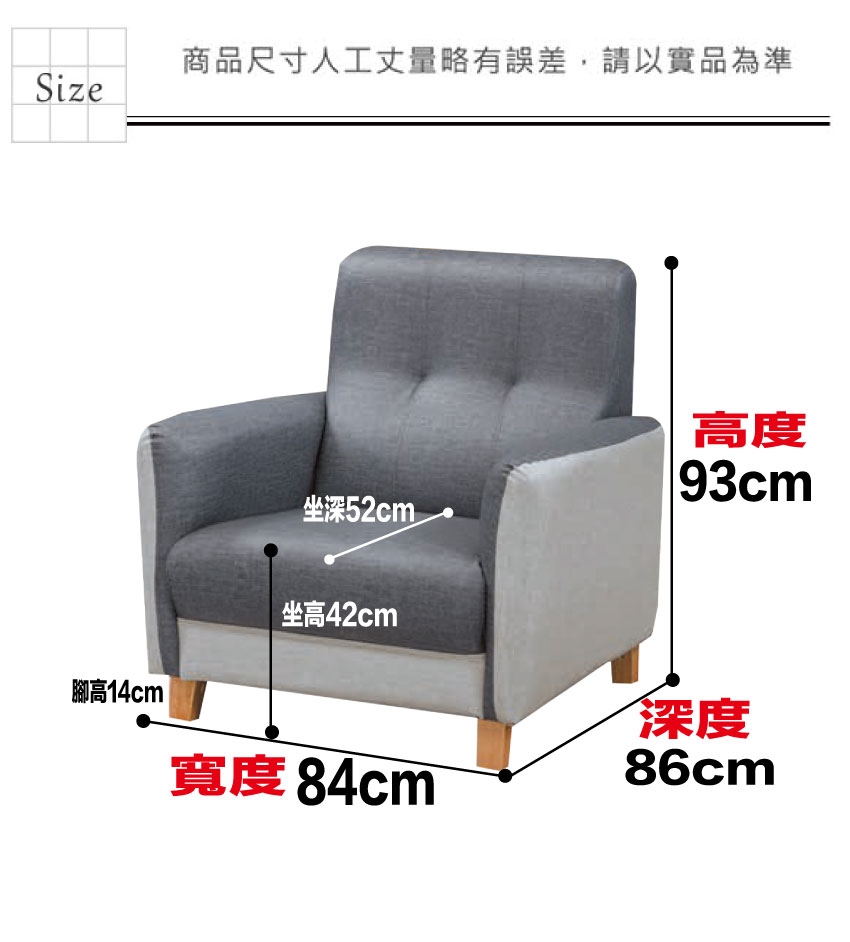 1人沙發椅尺寸:(寬)84x(深)86x(高)93/公分