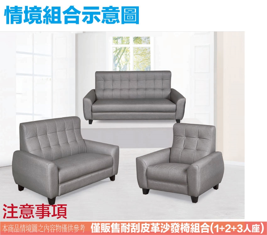 ★偏遠地區需額外加收運費,下標請先問與答詢問★ ★下訂前注意 由於商品流動較快,下訂前請先詢問是否有貨在下訂喔~★ 【綠家居】凱默灰耐磨皮革獨立筒沙發椅組合(1+2+3人座組合) 現代灰色系+安心材質製造,使用放心+搭配居家更便利,採用內部實木框架+耐磨造型腳座+耐磨耐刮皮革+高回彈泡棉+獨立筒彈簧座包等安心材質製造 ,全由專人配送到家,專業安心服務,替你省下更多時間!