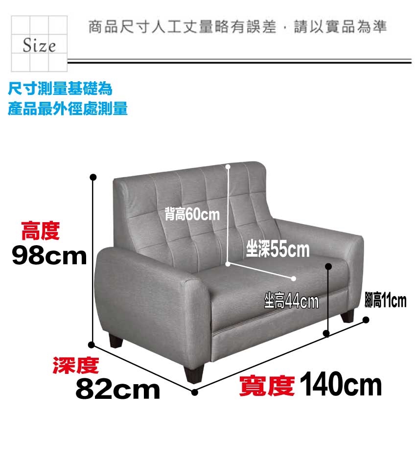 2人沙發椅尺寸:(寬)140x(深)82x(高)98/公分
