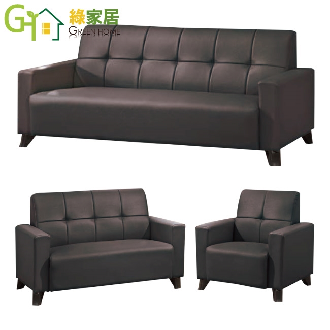 【綠家居】肯迪咖啡色透氣皮革沙發椅組合(1+2+3人座組合)